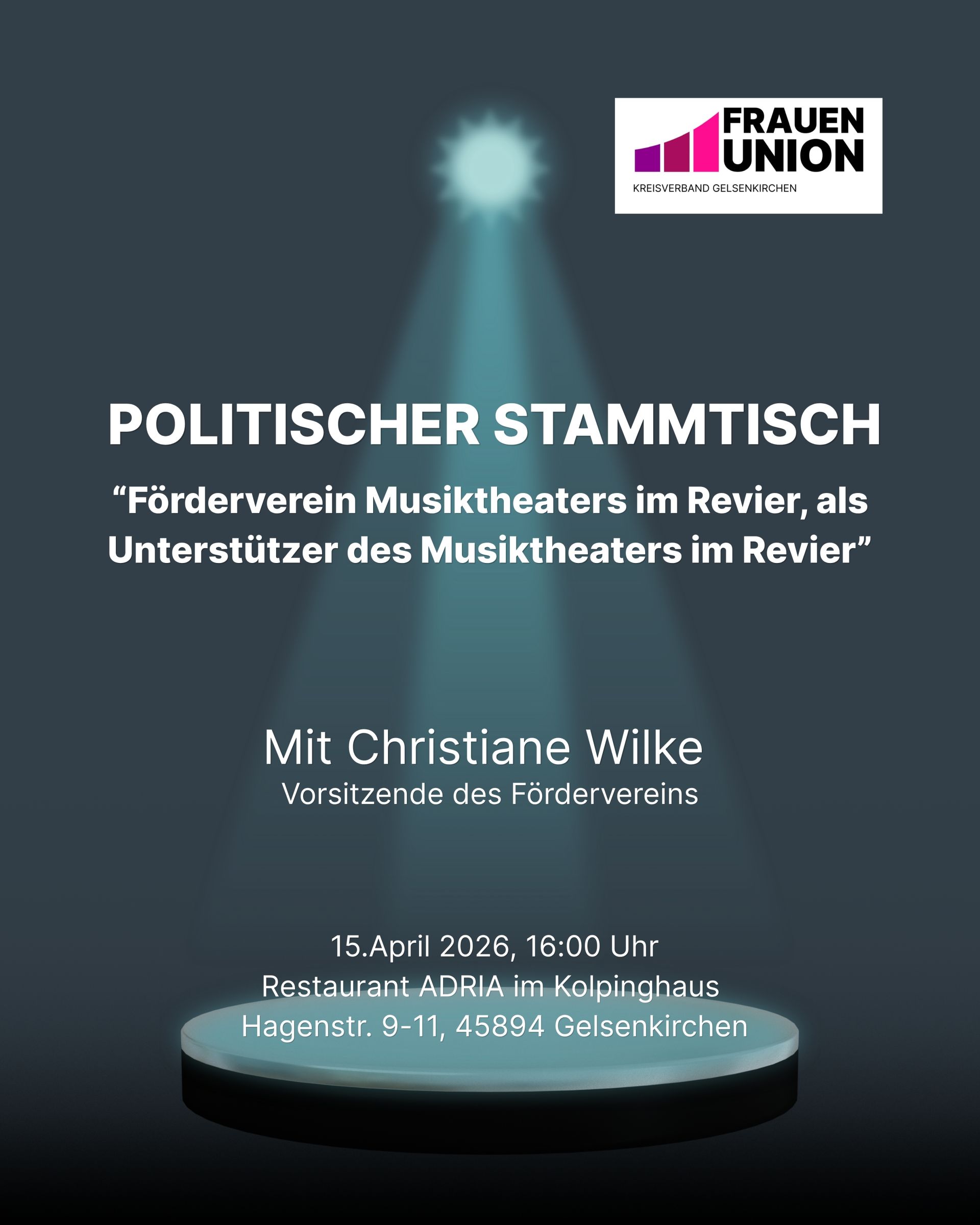 Schön, dass Sie den Weg zu uns gefunden haben. Die Frauen Union Gelsenkirchen ist seit über 70 Jahren eine starke Stimme für Frauen in unserer Stadt – mit rund 500 engagierten Mitgliedern, die sich aktiv in die politische Arbeit der CDU einbringen.