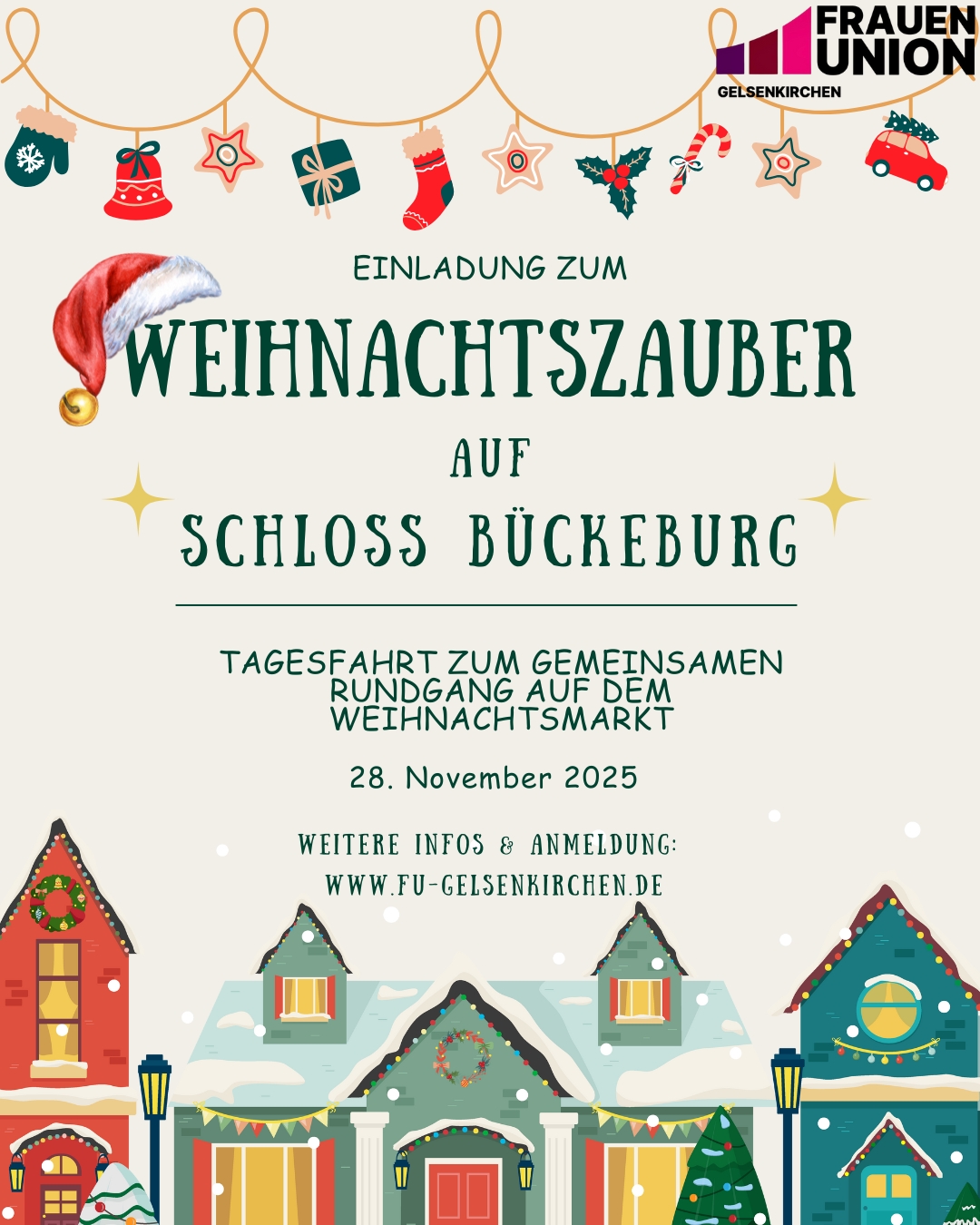 Der Teilnahmebetrag beträgt 65,00€. Bitte senden Sie ihre verbindliche Anmeldung bis zum 15. November 2025 an die CDU-Kreisgeschäftsstelle, vorzugsweise per E-Mail an info@cdu-ge.de, und überweisen Sie den Betrag auf das Konto der Frauen Union: