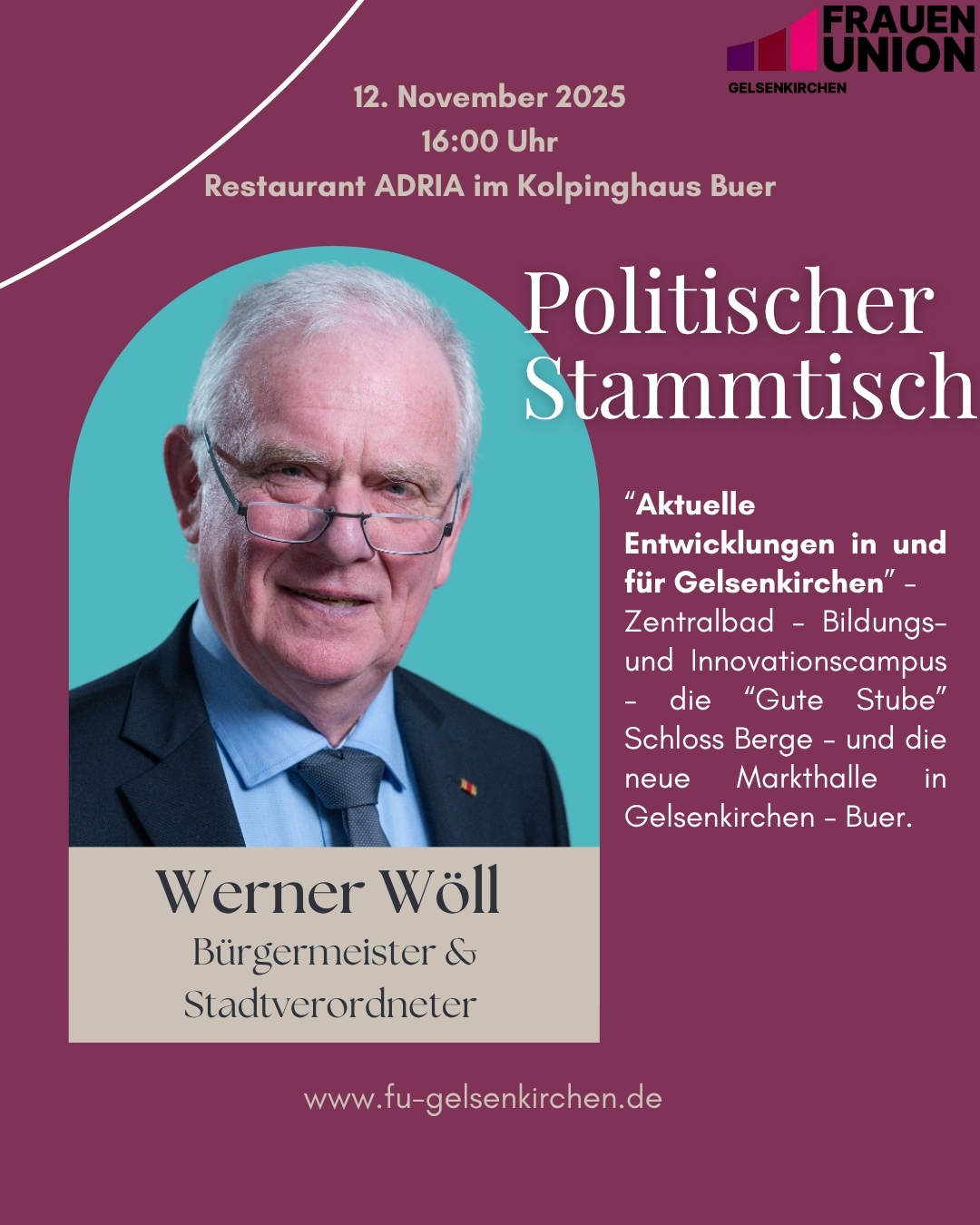 Schön, dass Sie den Weg zu uns gefunden haben. Die Frauen Union Gelsenkirchen ist seit über 70 Jahren eine starke Stimme für Frauen in unserer Stadt – mit rund 500 engagierten Mitgliedern, die sich aktiv in die politische Arbeit der CDU einbringen.